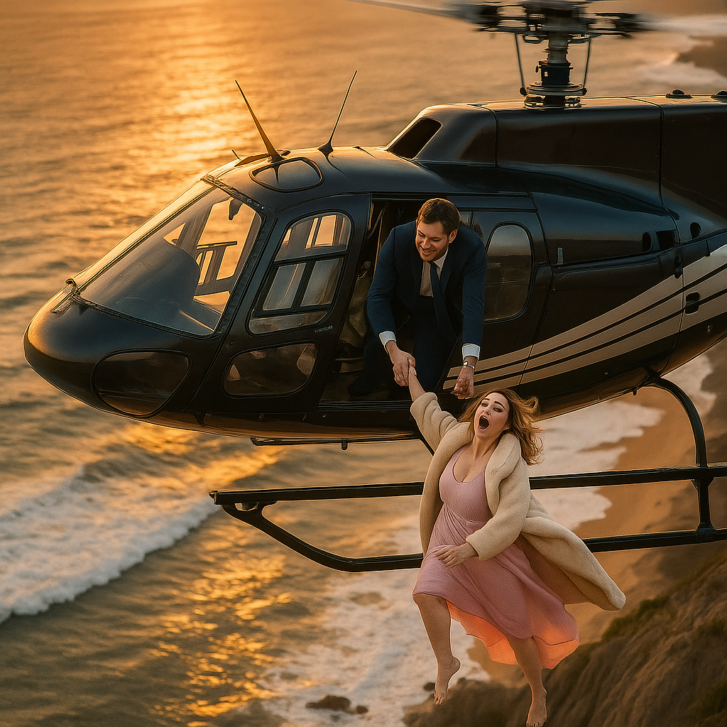 — Слушай, у меня тут партнёры на пару дней привезли вертолёт, налётать надо. Полетали бы вечером над морем, а? Ты беременная — в рестораны тебя особо не потащишь, а тут свежий воздух, романтика, —