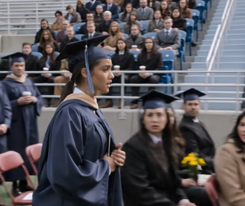 — Остановитесь! — крикнула она так громко, что музыка оборвалась. — Она обманщица! Она списывала, подделывала работы и не заслужила этот диплом!