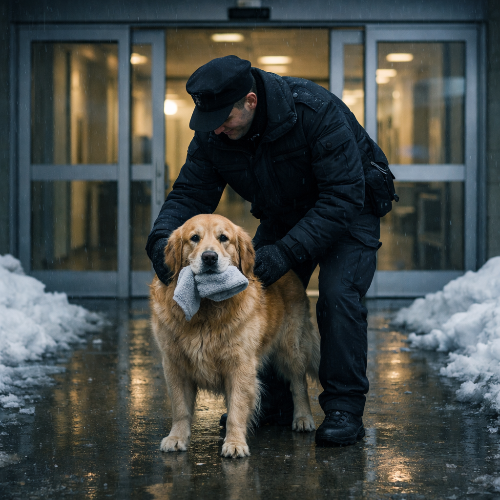 Пёс остановился прямо за порогом. Ветер рвал его шерсть, снег забивал ему морду, но он не уходил. Он бросил одеяло на бетон, поднял на меня глаза и выдал один-единственный длинный вой — не собачий каприз, а настоящий крик. Потом сделал пару шагов в метель, остановился и оглянулся через плечо.