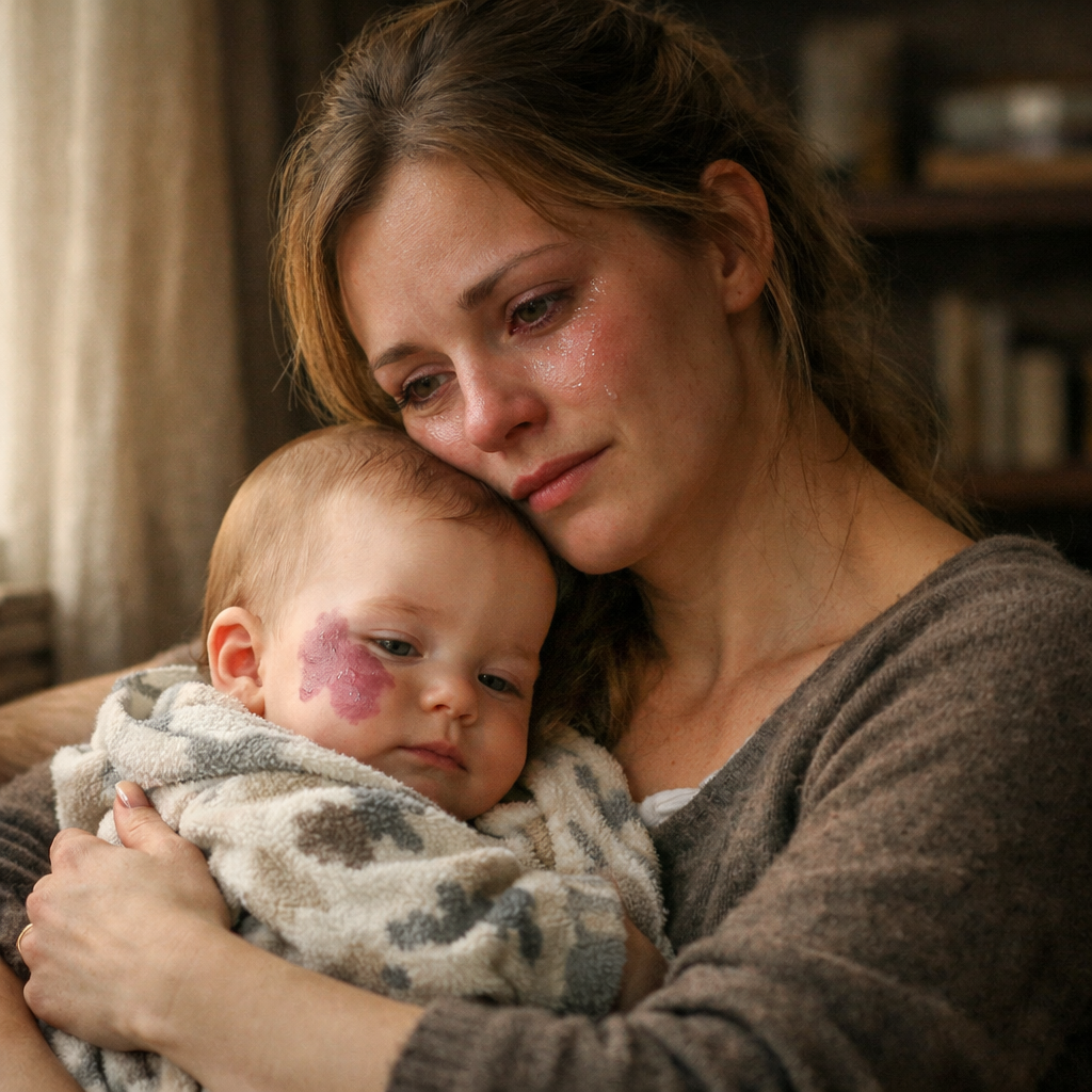 Ми з Климом жили не розкішно, але щиро. Він працював у сервісній компанії, я — віддалено в підтримці клієнтів, і наші вечори були прості: чай, теплі вареники з сиром, сміх над дрібницями. Та одне боліло роками — ми не могли мати дитину. Лікарі, аналізи, мовчазні сльози у ванній, коли здається, що тіло зраджує. Коли тест нарешті показав дві смужки, Клим сів на підлогу біля пральної машинки й плакав, як хлопчик. «Я обіцяю, що ти будеш найщасливішою мамою», — шепотів він мені в волосся. Назар народився під кінець зими, і відразу сталося те, чого я боялася: на половині обличчя — велика родима пляма, темно-рожева, помітна. У палаті настала та сама «ввічлива» тиша, що насправді ранить. Я злякалася поглядів, жорстоких слів, майбутнього. А Клим поцілував сина в лоб: «Ти ідеальний». Дебора ж дивилася так, ніби то я навмисне щось “зіпсувала”. Відтоді її ненависть стала гострішою.