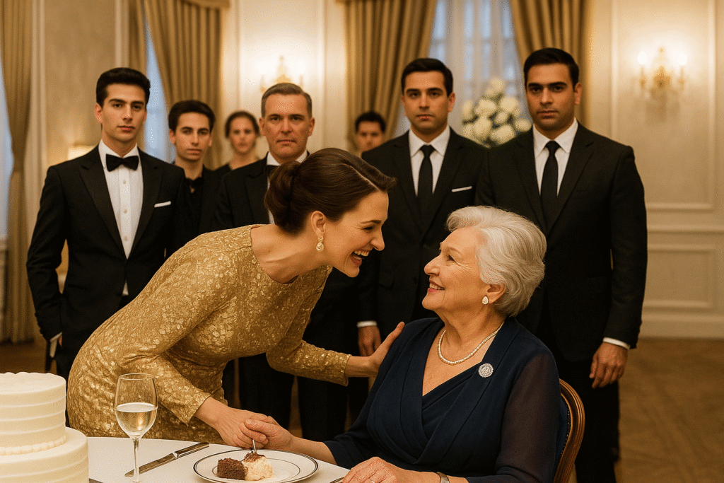 И один за другим все взгляды — банкиров, хирургов, светских львиц, невесты, жениха — потянулись туда же. К маленькому столу у дверей кухни. К женщине в простом платье, которая спокойно подняла стакан воды и встретила их общий взгляд ровным, не моргающим.