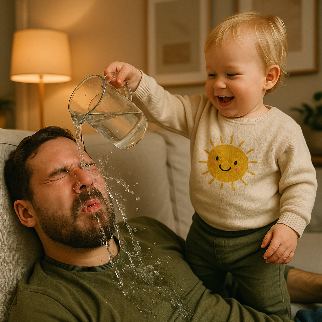 Для маленької дитячої голови це була єдина логічна дія: як мама будить вранці, коли трохи бризкає водою на обличчя. Просто в його версії це перетворилося на повну чашку, виливу на мене з голови до ніг.